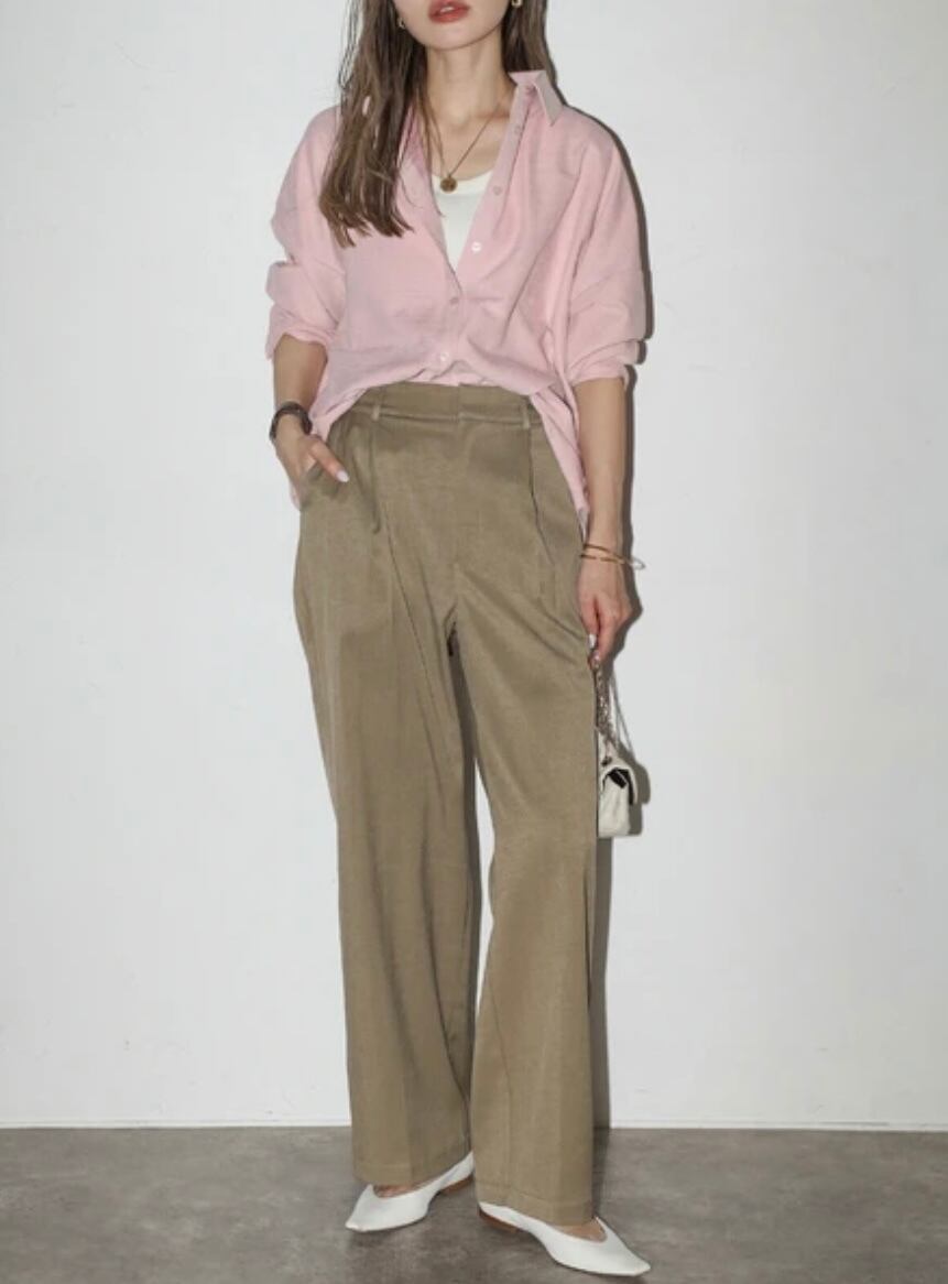 ウエスト部分にはタックを施し、リラックス感と上品さを兼ね備えた一枚です。