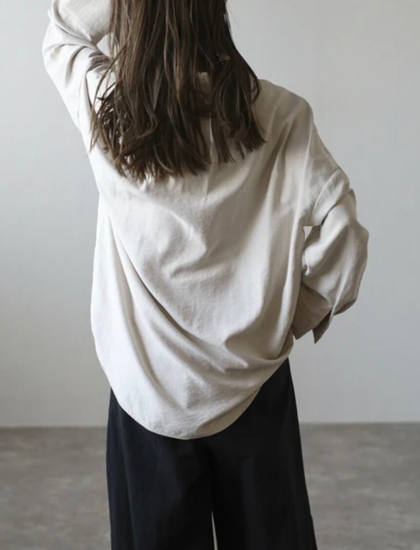 ピーチスキン素材を使用した、肌触りの良いオーバーサイズシャツ。