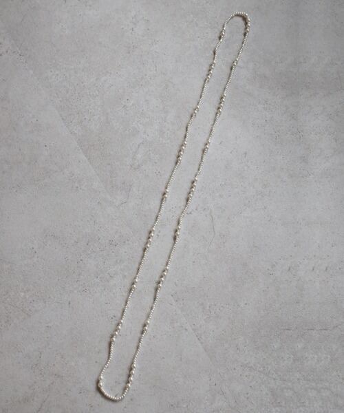 大小異なるパールをランダムに配した、表情豊かなロングネックレス。