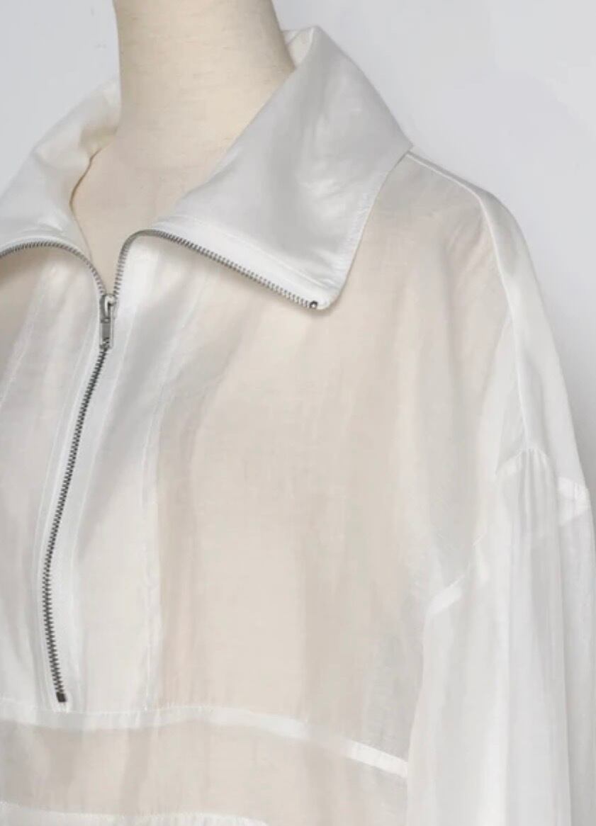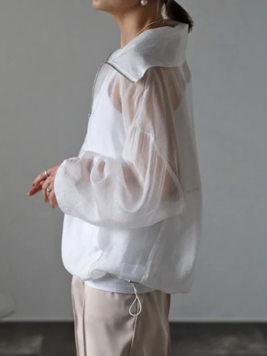 トレンドのアノラックプルオーバーのデザインに、キレイめに着られるシアー素材が登場。