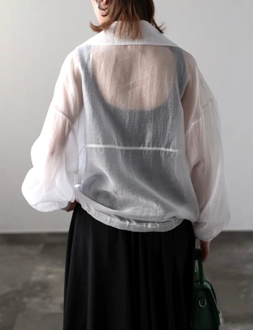 カジュアルなデザインながらシアー素材が女性らしい雰囲気を演出してくれる一枚です。