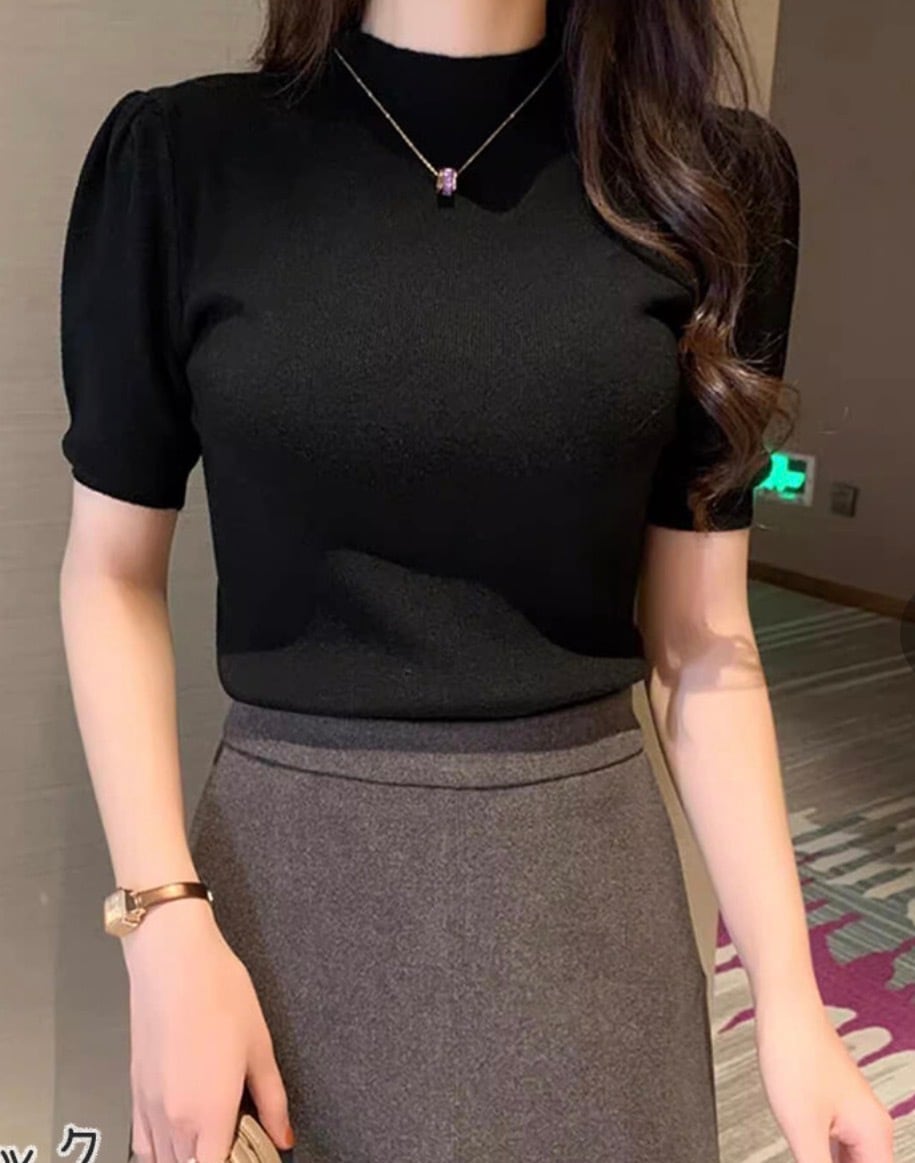 上質なニット素材を使用し、春にぴったりの半袖デザインが特徴のハイネックニットスタイル。ハイネックが首元をすっきりと演出し、シンプルながらも洗練された印象を与えます。体に優しくフィットするシルエットで、気軽に着こなせるアイテムです。春の陽気にぴったりの明るいカラーバリエーションで、さまざまなコーディネートにマッチします。