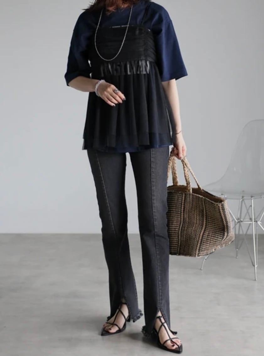 センタースリットストレッチデニムパンツ