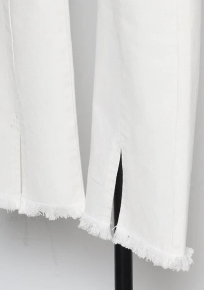 どんなトップスとも相性がよく、裾のフリンジもトレンドライクなディテール。